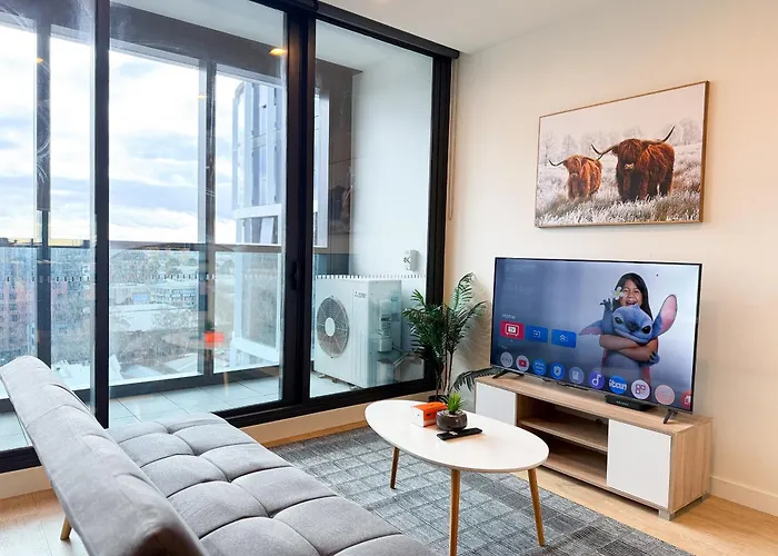 Minimalist One Bedroom Living In Cbd ist ein stilvolles Rückzugsgebiet für Reisende, die das pulsierende Leben der Stadt Melbourne genießen möchten. Dieses moderne Hotel vereint Komfort mit zeitgenössischem Design und bietet eine Oase der Ruhe im Herzen der Metropole.